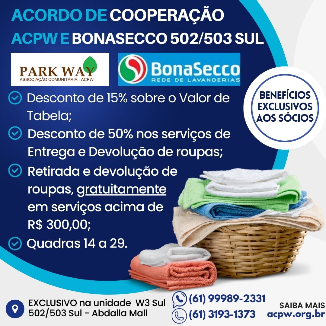 É com muita alegria que celebramos este Acordo de Cooperação entre a ACPW e a Lavanderia BonaSecco - Unidade 502/503 Sul.