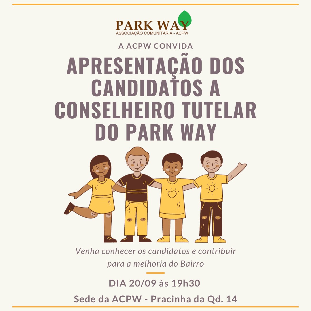 A ACPW convida a comunidade para conhecer os Candidatos a Conselheiro (a) Tutelar do Park Way, no dia 20 de Setembro, às 19h30, na Sede da ACPW.