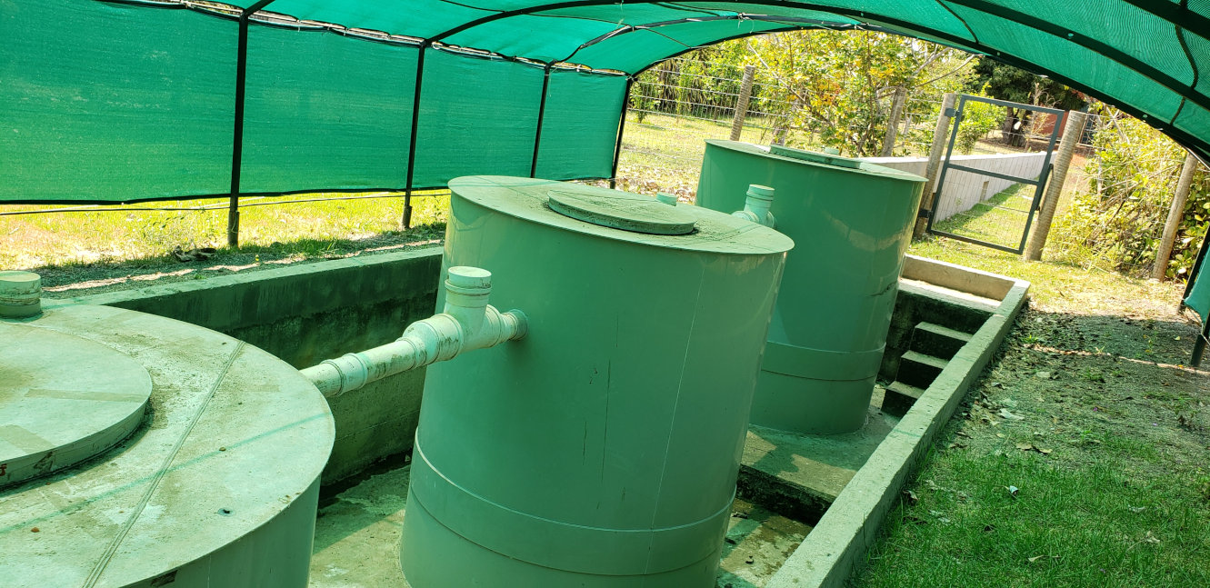 Tivemos a oportunidade também de conhecer algumas etapas da capitação da água da chuva e do funcionamento do tratamento de esgoto em sua residência.