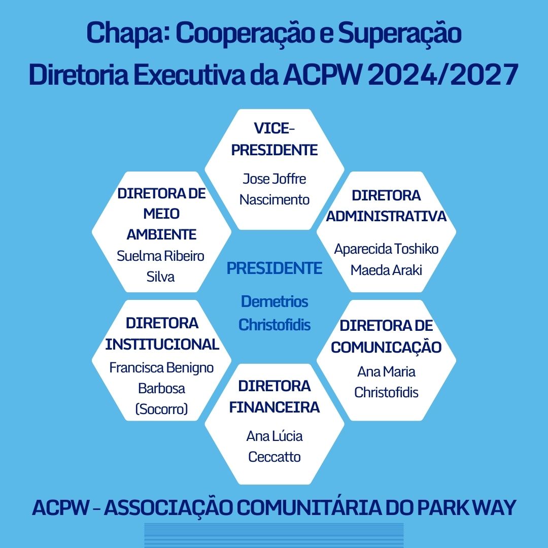 No dia 28 de Fevereiro de 2024, na Sede da ACPW, foi realizada a assembleia de eleição da nova diretoria executiva tendo a frente como presidente o Dr Demetrios Christofidis para o período de 2024/2026.