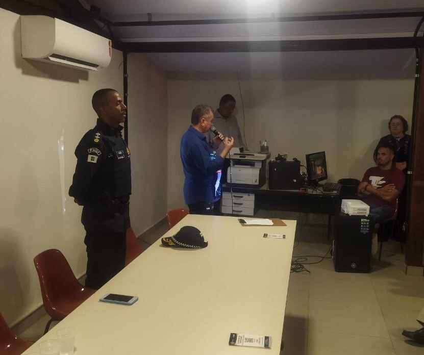 O Major Jairo explanou sobre o projeto Rede de Vizinhos Protegidos, apresentou vídeo de um aplicativo de segurança comunitária para smartphone já em uso pelo 3? Batalhão da PM.